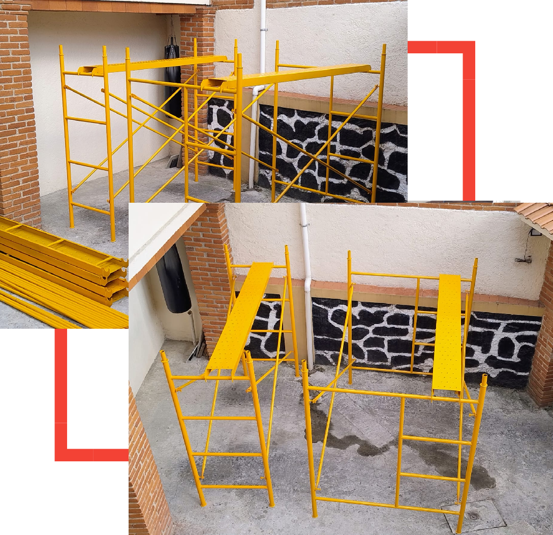 Ofrecemos renta de andamios resistentes y seguros, ideales para proyectos de construcción, remodelación o mantenimiento en la CDMX. Nuestro equipo cumple con los más altos estándares de seguridad para que trabajes con confianza en cada proyecto.”